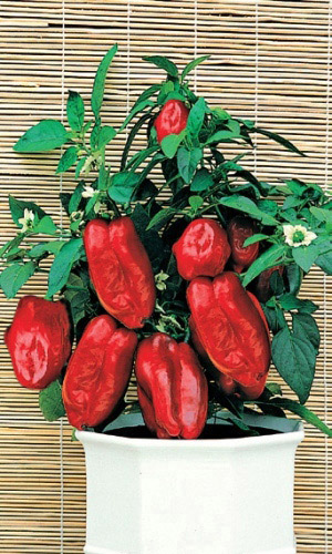 Суперурожайный, среднеранний сорт для выращивания в открытом грунте, парниках, в горшках, на окне или балконе. Кусты высотой 50-70 см, сплошь усыпаны яркими перчиками. Плоды тёмно-красные, глянцевые, практически без семян, треугольной формы, массой 20-25 г, очень сладкие и...