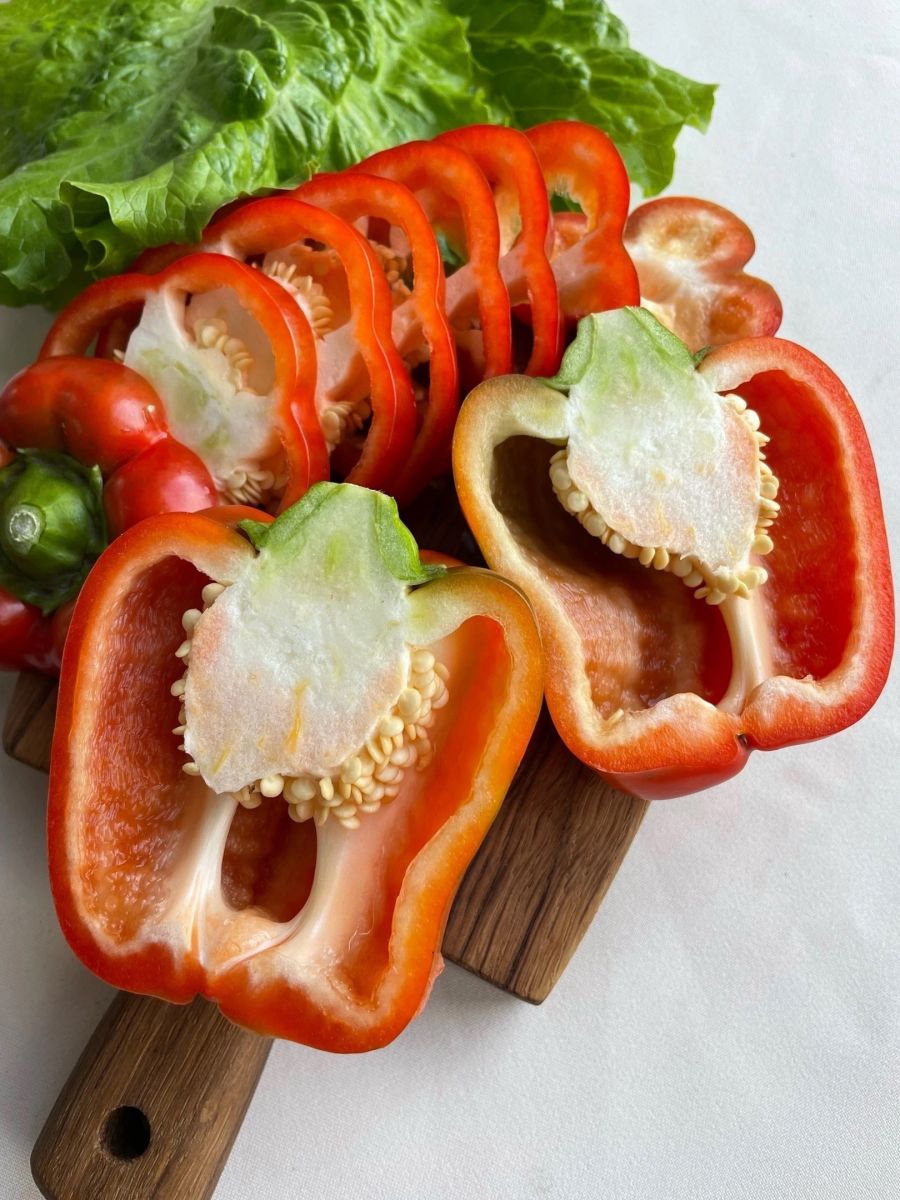Раннеспелый гибрид для открытого грунта и пленочных укрытий. Растение высотой 65-75 см. Плоды крупные, кубовидные, красные, массой 150-200 г, толщина стенки 8-12 мм, сладкого, сочного вкуса. На растении одновременно созревает 10-12 плодов.