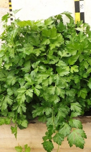Высокоурожайный сорт листовой петрушки с сочными, нежными листьями и плотными черешками. Листья крупные, тёмно-зелёные, треугольной формы, очень ароматные. Зелень хорошо отрастает после срезки, идеально подходит для пучковой продукции. Корневища легко перезимовывают в почве, и дают свежую зелень ранней весной. Используется в кулинарии в свежем и сушёном виде, а также как лекарственное растение при заболеваниях почек и мочеполовой системы, улучшает обмен веществ, активизирует пищеварение...