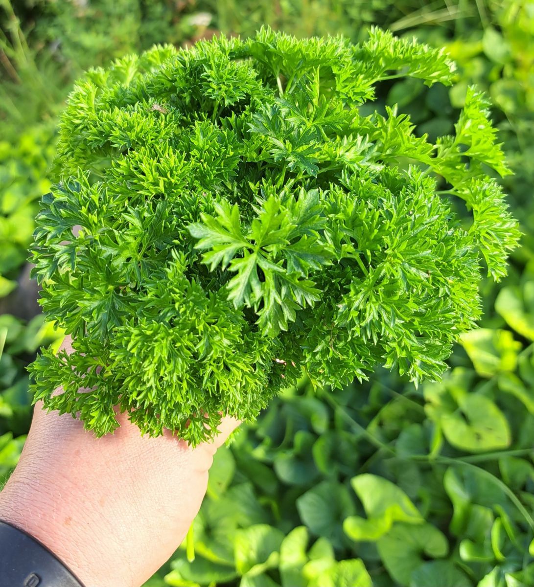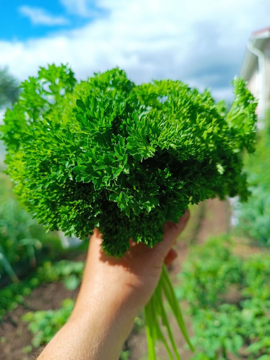 Отличительная особенность данного сорта петрушки это высокая регенерирующая способность, то есть она очень быстро отрастает после срезки на пучок, не успеешь срезать кустик (обязательно оставив 2-3 внутренних листка в розетки) как через короткий срок он словно по волшебству отрастает новый.