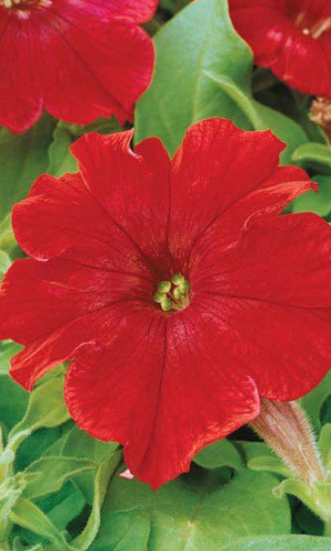 Ампельная обильноцветущая петуния. Стебли свисающие, гибкие, длиной 35-40 см, равномерно усыпаны огромным количеством красных цветков Ø6-8 см. Цветение раннее и продолжительное, с мая до окончания сезона. Растения прочные, хорошо переносят воздействие дождя и ветра, не...