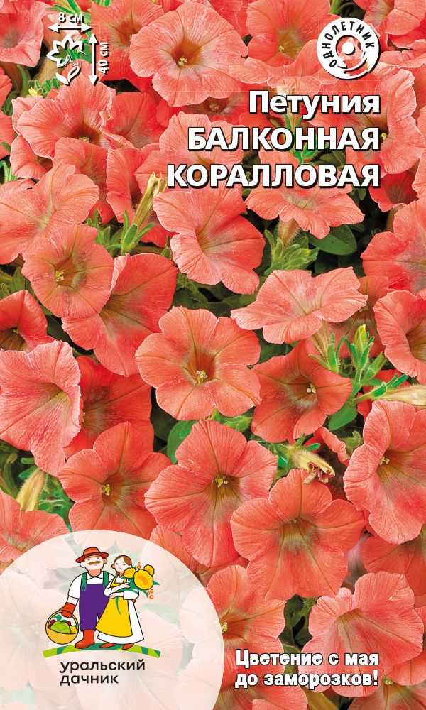 Закрытый грунтАмпельная обильноцветущая петуния. Стебли свисающие, гибкие, длиной 35-40 см, равномерно усыпаны огромным количеством кораллово-розовых цветков диаметром 6-8 см. Цветение раннее и продолжительное, с мая до окончания сезона. Растения прочные, хорошо переносят воздействие дождя и ветра, не теряя своей декоративности. Петуния светолюбива, засухоустойчива, хорошо адаптируется к любым условиям выращивания. Идеально подходит для выращивания в подвесных корзинах, кашпо и балконных ящиках.