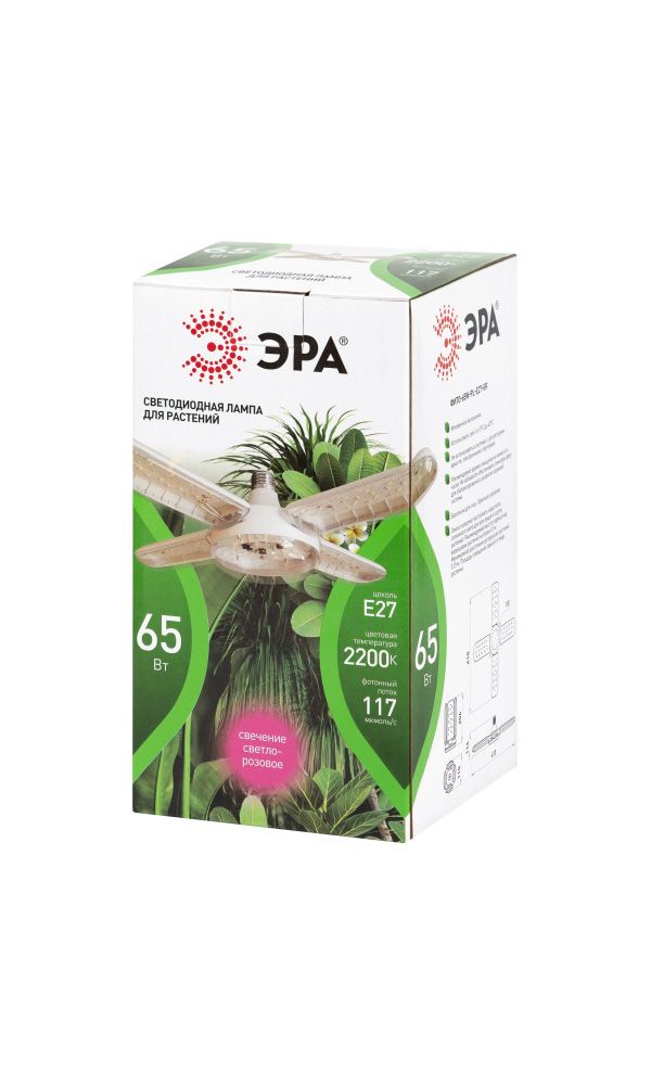 Обеспечьте растениям дополнительный свет даже в пасмурные дни с 5-лепестковой светодиодной фитолампой ЭРА Зелёная линия / Green line. Модель мощностью 65 Вт с цоколем E27 подходит для домашнего выращивания рассады, зелени, комнатных цветов и других культур, помогая создать более комфортные условия для роста и развития.