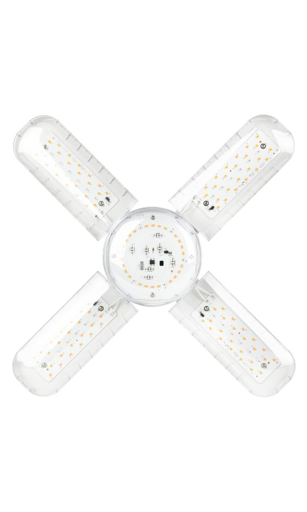 Фотосинтетический фотонный поток 117 мкмоль/с способствует активному фотосинтезу и делает лампу хорошим решением для выращивания самых разных видов растений. Продуманная форма с пятью лепестками помогает более равномерно распределять свет, что особенно удобно при использовании дома, на стеллажах, подоконниках и в зонах с рассадой.