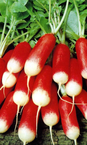 Раннеспелые сорта редиса (срок созревания корнеплодов 16-22 дней) для ранней выгонки в открытом и защищённом грунте. Корнеплоды имеют разную форму, выравненные, различных окрасок: красные, розовые, белые и других цветов. Мякоть белая, нежная, очень сочная. Эфирные масла придают деликатесный слабоострый вкус. Сорта высокоурожайные, устойчивы к растрескиванию корнеплодов и стрелкованию...