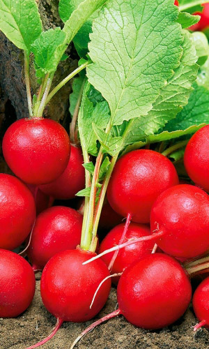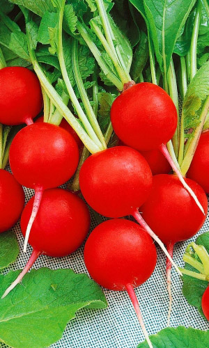 Самый ранний из известных сортов редиса (срок созревания 16 дней). Корнеплоды ярко-красные, округлой формы, очень сочные, деликатесного вкуса, имеют великолепный товарный вид. Используют для ранней выгонки в открытом и защищённом грунте. Ценность: высокая товарность, выровненность корнеплодов, отличные вкусовые качества, устойчивость к растрескиванию и стрелкованию...