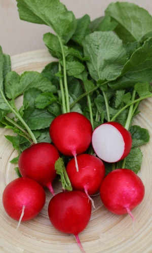 Невероятно урожайный, суперранний сорт, с дружной отдачей урожая. Корнеплоды выровненные, округлой формы, насыщенно-красного цвета, массой до 20 г, с белоснежной, хрустящей мякотью, отличного вкуса.
