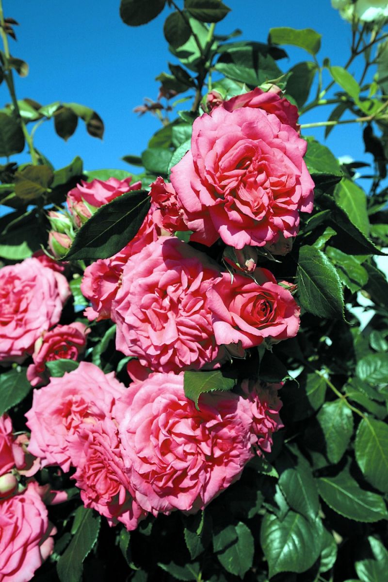 Открытый грунтПо праву считается лучшей пейзажной розой. В начале лета Лагуна выбрасывает большое количество густомахровых цветков сочного, малинового цвета. Они достаточно крупные, достигают 10 см в диаметре, имеют более 50 лепестков, растут пышными кистями по 5-10 штук одновременно. В разгар цветения куст полностью покрыт бутонами и цветами, из-под них почти не видно листвы. Этот сорт роз имеет потрясающий пряно-фруктовый, пьянящий аромат, который разносится по всему саду. Роза необычайно яркая, сочная и энергичная, прекрасно нарастает и при этом обильно цветёт в течение всего сезона, до первых осенних заморозков.