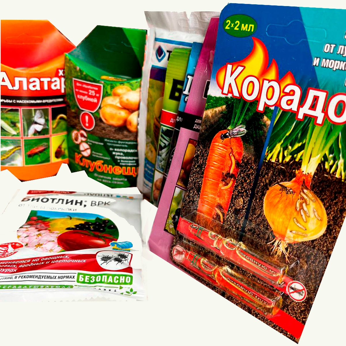 Комплексная защита от насекомых и вредителей: от колорадского жука, капустной белянки, капустной совки, паутинного клеща, яблонной плодожорки, цветоедов, трипсов, тлей, листогрызущих гусениц на овощных, плодовых, цветочных культурах, комнатных растениях...