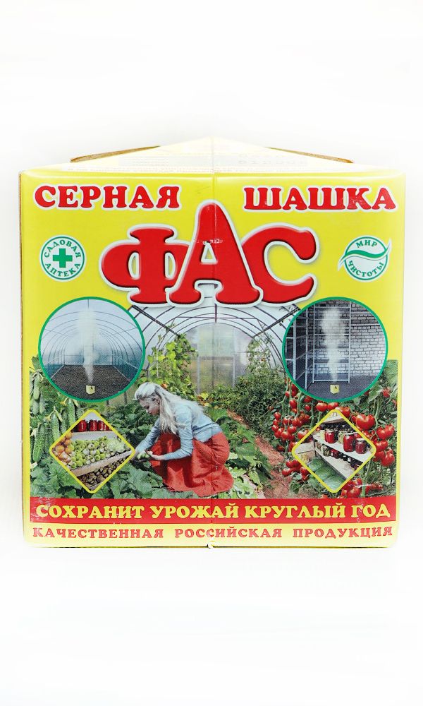 Современное средство серная шашка ФАС для фумигационной обработки пустых погребов и подвалов, парников, теплиц и оранжерей, которая уничтожает: