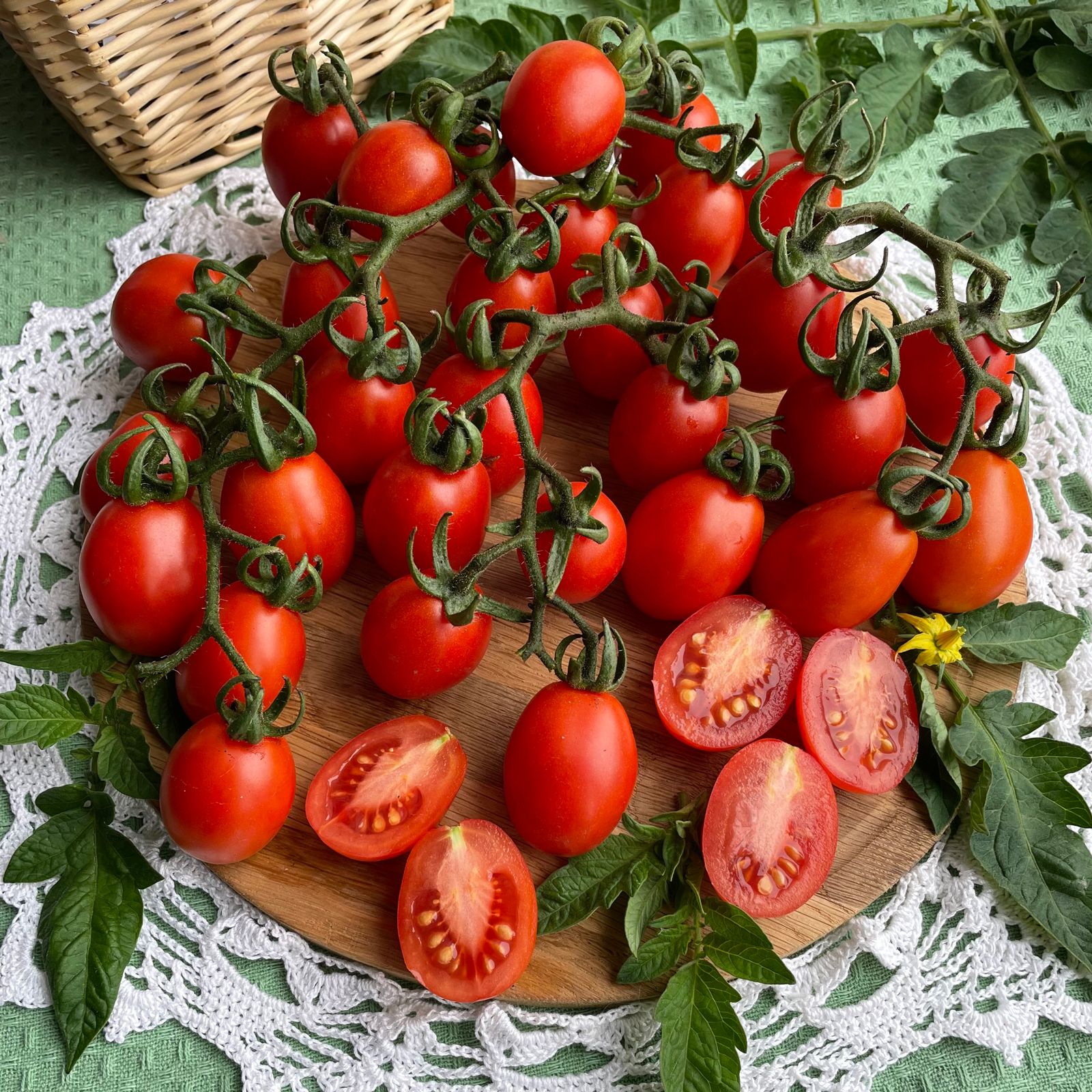 Скороспелый, сказочно урожайный сорт – черри для теплиц и парников. Растение высотой около 2 м, в кисти формируется свыше 30 сливовидных плодов красной окраски, массой 15-20 г.Ценность: высокая завязываемость плодов (95-100 %), дружное плодоношение, выравненность плодов, устойчивость к растрескиванию, прекрасная лёжкость (более 30 дней). Рекомендуется для потребления в свежем виде, засолки и цельноплодного консервирования...