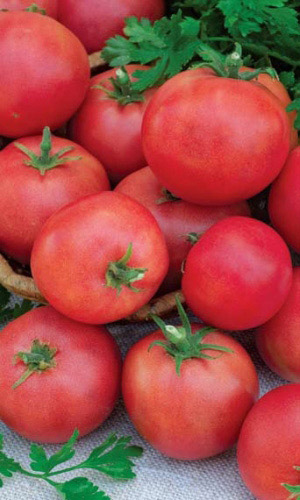 Ультраскороспелый, неприхотливый розовоплодный сорт для открытого грунта. Растения детерминантные, высотой 30-40 см, выращиваются без пасынкования. Плоды в компактных кистях, округлые, ровные, плотные, массой 70-80 г, с отличными вкусовыми качествами, универсального использования. Сорт ценится за раннее дружное созревание, высокую урожайность – 4-7 кг/м2, хорошую лёжкость и транспортабельность томатов. Устойчив к растрескиванию и вершинной гнили плодов.