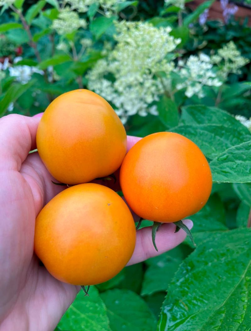 Среднеранний индетерминантный сорт. Предназначен для выращивания в теплицах и парниках с отличной завязываемостью плодов при сложных погодных условиях. Растение кистевого типа, высотой около 2 м. В кисти по 6-7 плодов, весом 80-90 г. Плоды имеют жёлтую с красноватым румянцем окраску снаружи и красного цвета мякоти внутри.