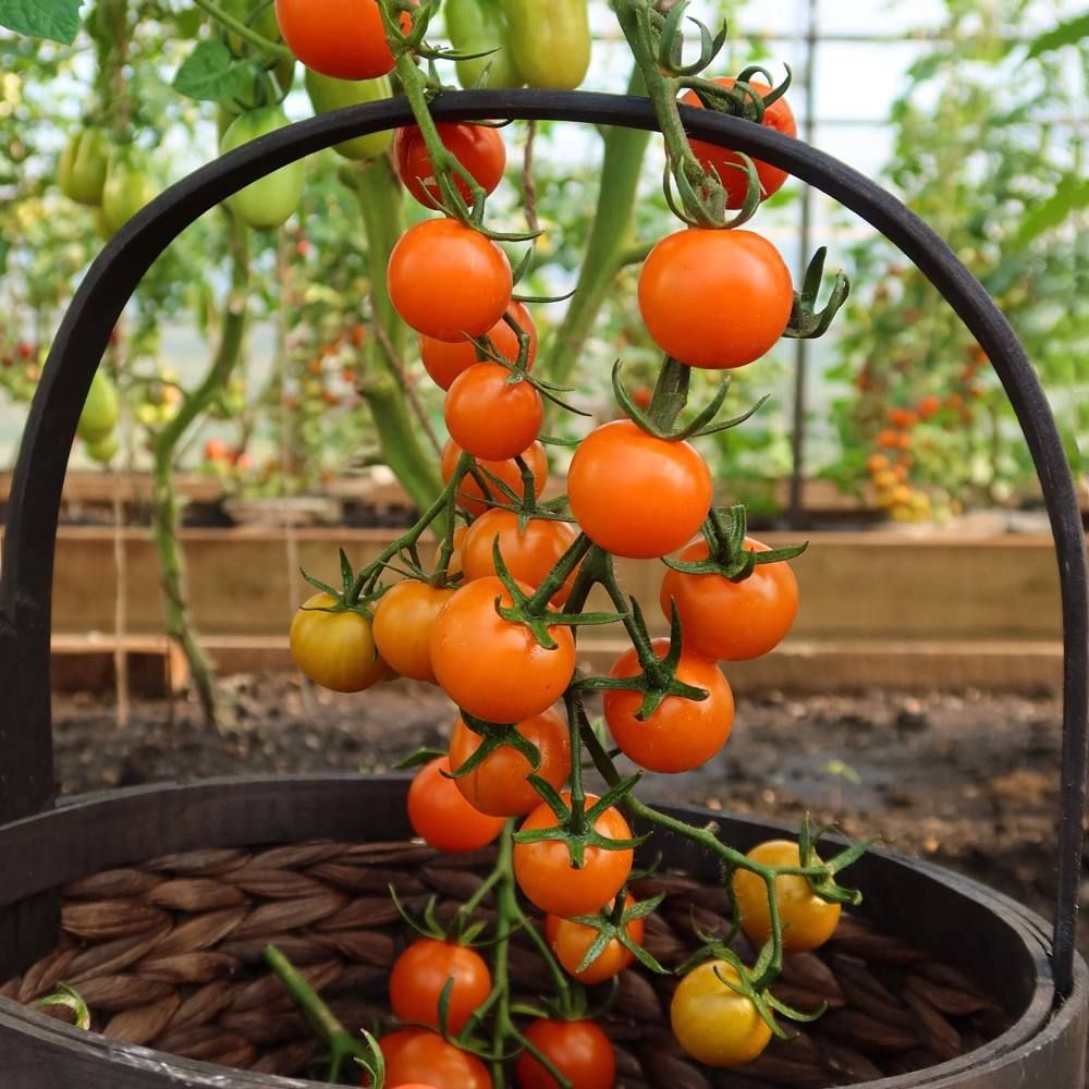 Совершенно сказочный сорт (причём по всем пунктам), который и в название получил имя героини сказки братьев Гримм Рапунцель. Девушка имела шикарные золотые косы – именно их и напоминает томатный куст, формирующий шикарные помидорные грозди, которые вот-вот, кажется, надломят ветви высоченного (до 160-180 см) растения.