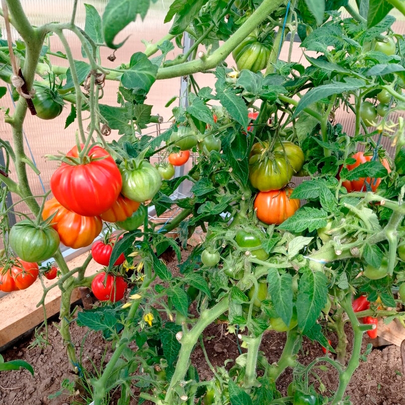 Новый салатный среднеспелый (110 дней) сорт Челябинской селекции, создан для выращивания во всех типах теплиц и парниках. Растение мощное, высотой 1,8-2,0 м, хорошо облиственное, индетерминантное. Сорт требует обязательной подвязки как самого ствола, ветвей так и кистей, кисти сильно нагружены плодами, очень тяжёлые. Плоды крупные, массой до 1,5 кг, ребристые, красного цвета. Мякоть сочная, с маленькими семенными камерами, отличных вкусовых качеств. Использование универсальное – в свежем виде, для заморозки.