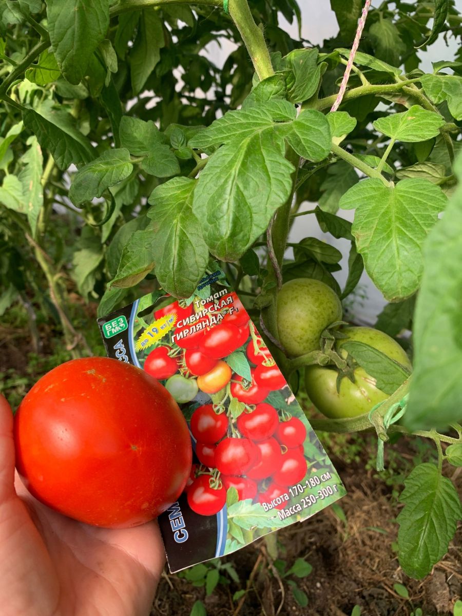 Экстремально ранний гибрид, период от всходов до начала созревания 90-95 дней. Растение мощное, высотой 170-180 см, формировать следует не менее чем в 2 ствола. Первая кисть закладывается над 6-м листом, последующие через 2-3 листа. Кисть с 6-8 плодами, на растении формируется 10-11 кистей – всё это великолепие выглядит просто завораживающе, кисти как настоящие гирлянды с яркими плодами. Плоды интенсивно красной окраски, округлые, гладкие, плотные, массой 250-300 г, сочетающие наивысшие вкусовые качества с транспортабельностью. Урожайность стандартных плодов умопомрачительная 17-19 кг/м².