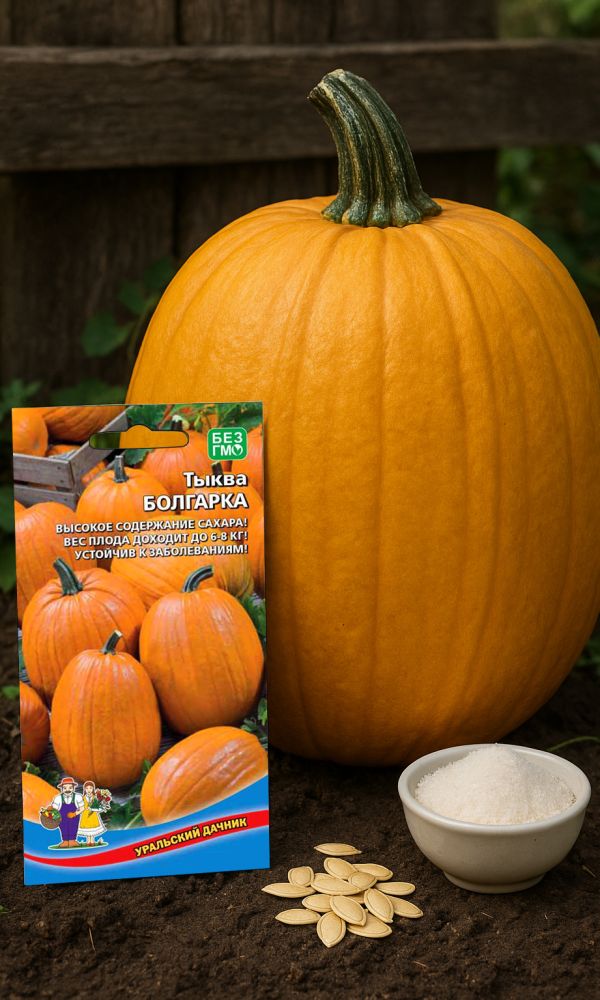 Тыква «Громила» — надёжный среднепоздний сорт для щедрых осенних сборов. От всходов до уборки проходит 120–130 дней. Плоды крупные, ровные, массой от 4–6 до 18 кг — одного такого «гиганта» хватает на много блюд и заготовок. Мякоть оранжевая, средней толщины, с приятным...