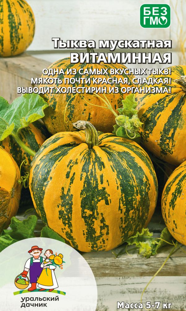 Среднеспелый столовый сорт мускатной тыквы. Плоды булавовидные, гладкие, оранжевые, массой 3-5 кг. Мякоть красно-оранжевая, нежная, сладкая, сочная, хрустящая, с ярким ореховым ароматом, богата клетчаткой, витаминами и каротином.Ценность: стабильная урожайность, выравненность плодов, сохранение товарных и вкусовых качеств, устойчивость к пониженным температурам и неблагоприятным условиям выращивания...