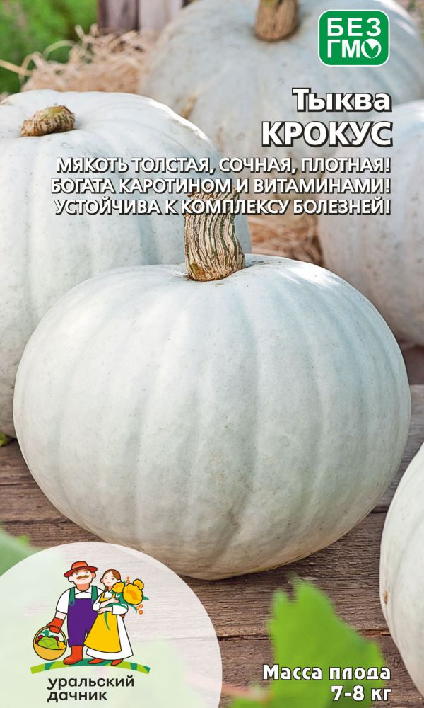 Среднеспелый (95-108 дней от всходов до уборки плодов), сорт крупноплодной тыквы. Растение короткоплетистое, главная плеть средней длины. Формирует округлые, слабосегментированные плоды серого цвета, очень крупные, массой 7-8 кг, а отдельные достигают до 21 кг, средняя урожайность – 9-11 кг/м2. Мякоть ярко-жёлтая, толстая, плотная, сочная, отличного вкуса.