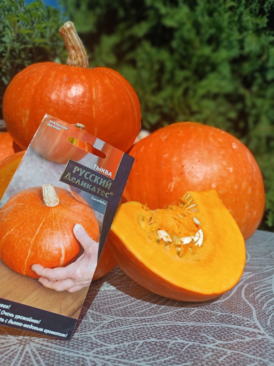 Раннеспелый, высокоурожайный сорт. Плоды каплевидные, оранжевого цвета, массой до 4 кг. Мякоть ярко-оранжевого цвета, очень нежная и сладкая, обладает приятным, дынным ароматом.