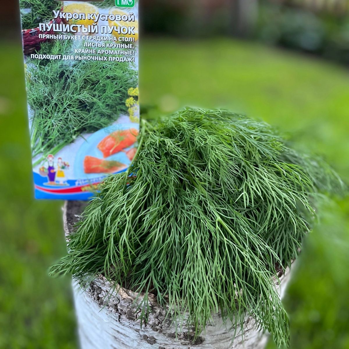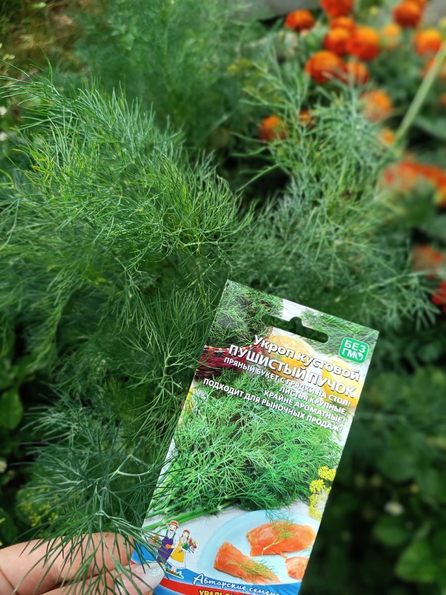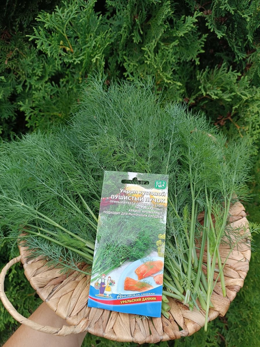 Уникальный сорт укропа, формирующий мощный облиственный куст. Листья крупные, длина 28-36 см, ширина 30-36 см, зелёные с восковым налетом. Растение долго не цветёт, образует мощные пушистые ветви. Хорошо подходит для подзимнего посева. Молодые растения переносят весенние возвратные заморозки. Урожай зелени составляет 2,8-6,0 кг/м2. Рекомендуется для использования в свежем виде, сушки, соления, замораживания. Семена используются в качестве специи при засолке и мариновании...