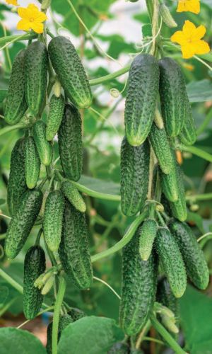 Скороспелый высокоурожайный холодостойкий гибрид женского типа цветения для весенних теплиц, тоннелей и открытого грунта. Плоды цилиндрической формы, интенсивно-зелёные, крупнобугорчатые, белошипые, длиной 13-15 см, сочные, ароматные, хрустящие, без горечи.Ценность: дружная, массированная отдача урожая, высокая товарность и выравненность плодов, устойчивость к болезням.Рекомендуется для свежего потребления и переработки...