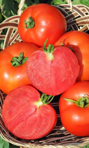 Раннеспелый высокорослый гибрид для выращивания в закрытом и открытом грунте. Плоды сердцевидные, слаборебристые, красные, плотные, мясистые, массой 200-300 г, отличных вкусовых качеств. Ценность сорта: высокая урожайность, крупноплодность, устойчивость к болезням, неприхотливость выращивания. Рекомендуется для приготовления салатов, овощных ассорти и соков...